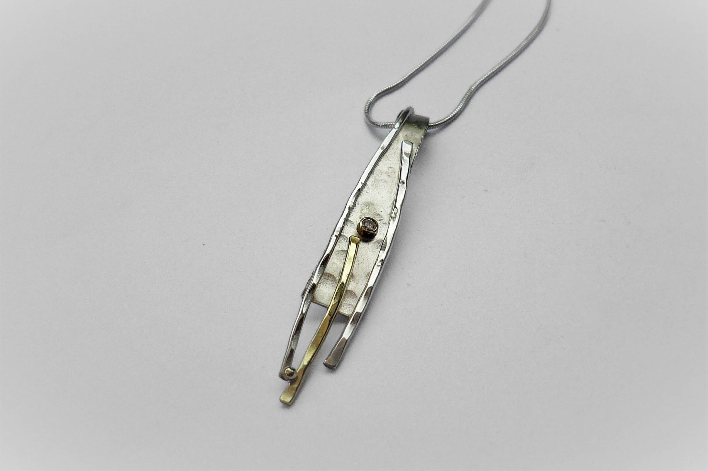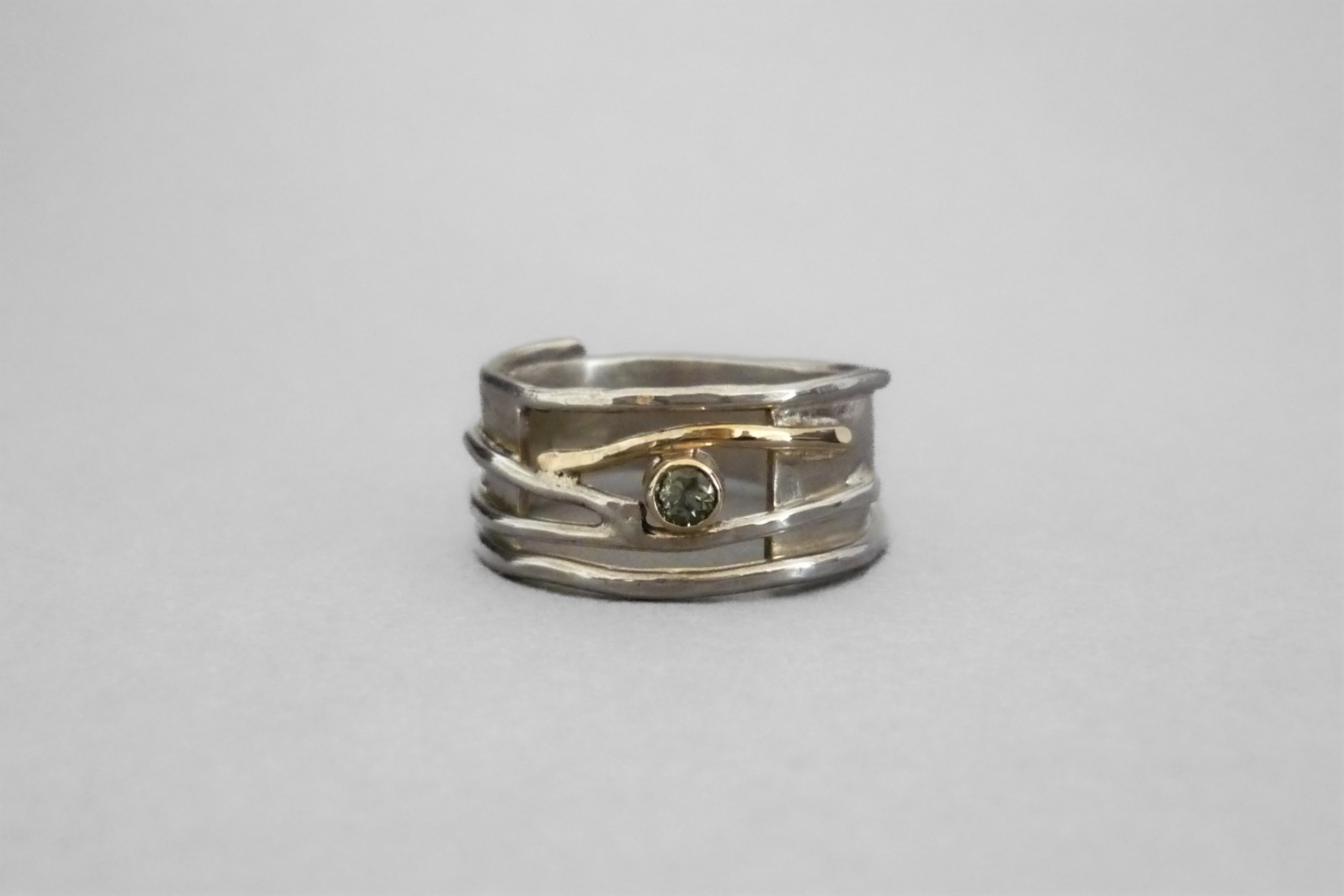 Silver ring with 9ct yellow gold strands and 20pt diamond. Price on request.